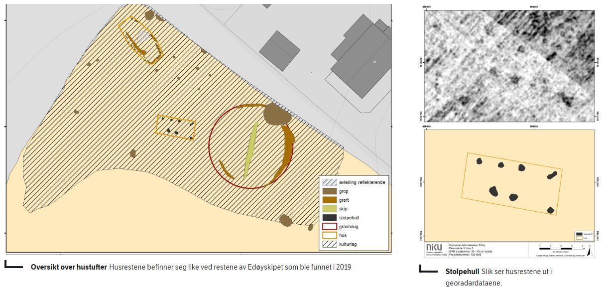 – Like nord-vest for der vi avdekket skipsgraven dukker det opp to anomalier som vi tolker som husrester.